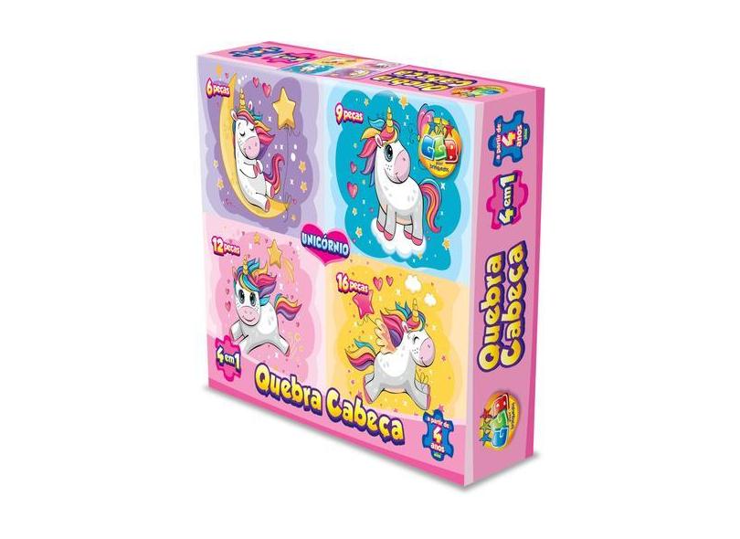 Quebra Cabeça Unicornio 4 Em 1 Diversão Criança Presente - GGB, Quebra