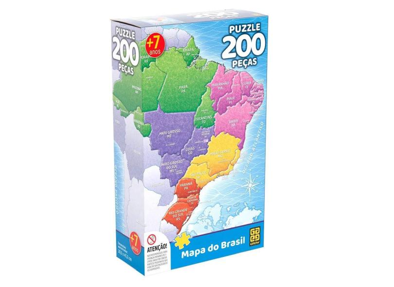 Quebra-cabeças 200 Peças Mapa do Brasil - Grow