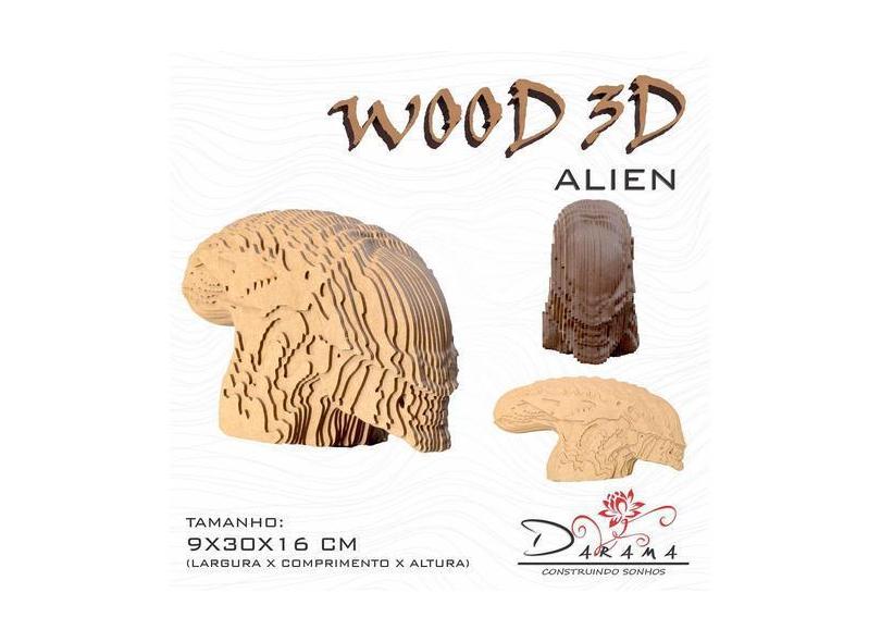 Quebra Cabeças 3D Cabeça Enfeite Alien Busto Mdf 3mm Natural - Darama