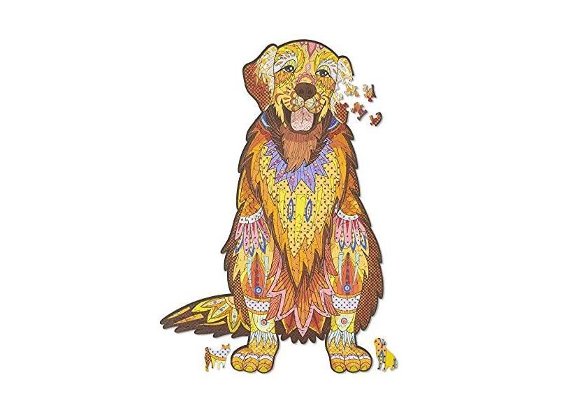 Quebra-cabeças de madeira para adultos – Quebra-cabeças de madeira Golden Retriever com peças em formato de animal, quebra-cabeça de cachorro de madeira exclusivo para todas as idades,