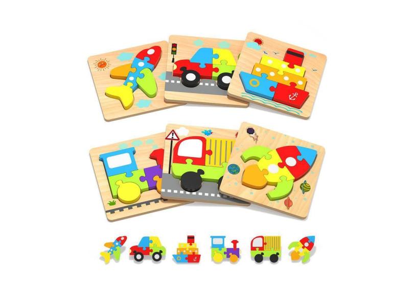 Quebra-cabeças de madeira para crianças Yetonamr 6 em forma de veículo de 1 a 3 anos