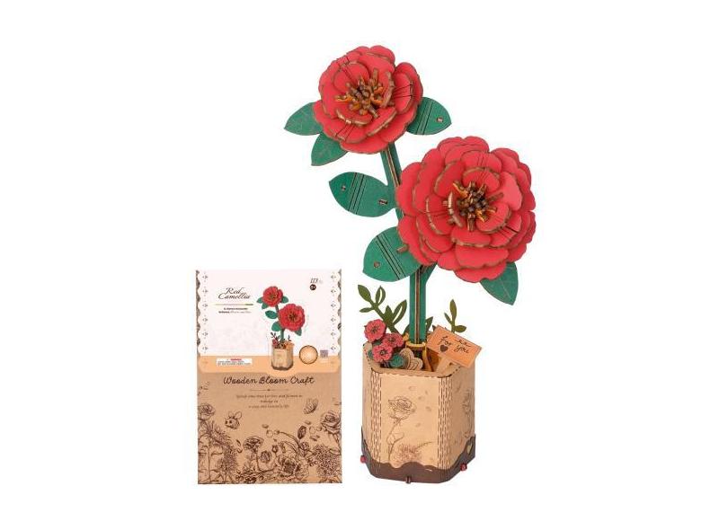 Quebra-cabeças de madeira Wowood 3D Flower Red Camellia para adultos