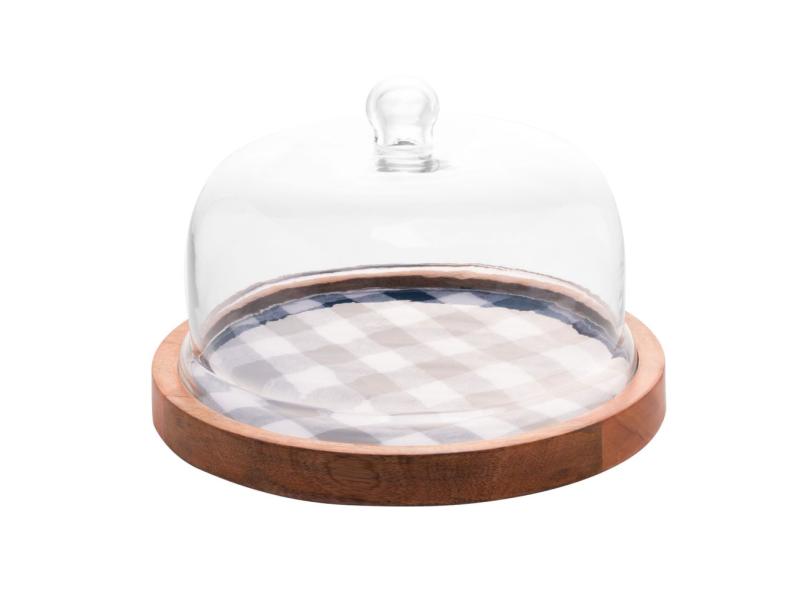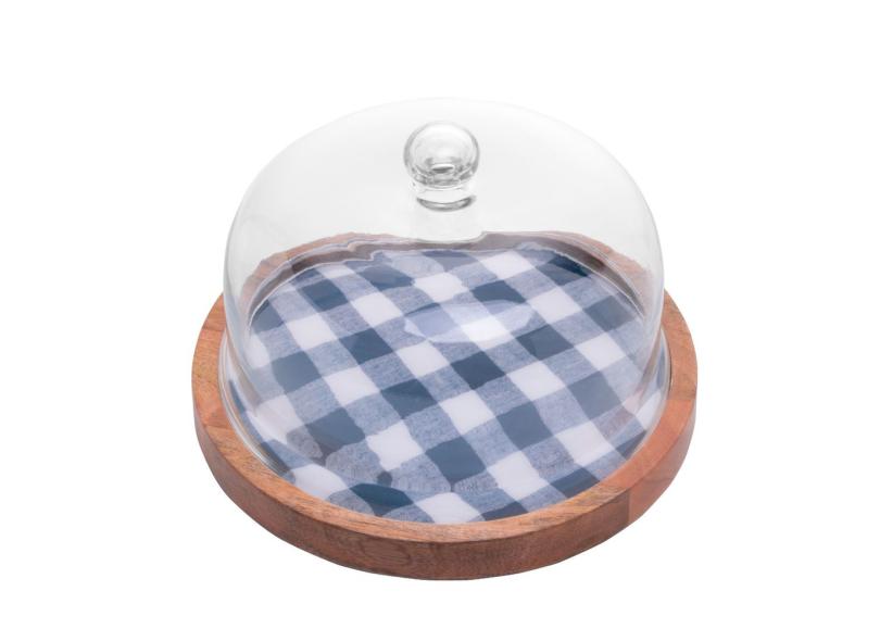 QUEIJEIRA MADEIRA C/TAMPA VIDRO XADREZ 24cm