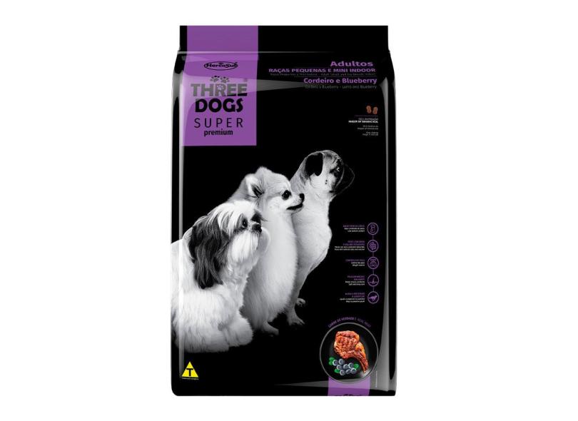 Ração Cães Three Dogs Super Adultos Raças Pequenas E Mini Cordeiro 10,1Kg