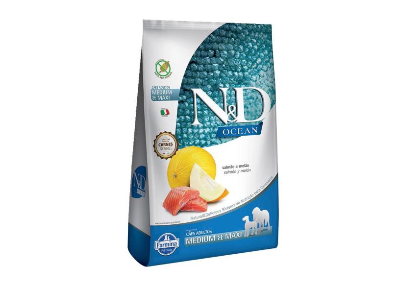 Ração Seca Farmina N&D Ocean Salmão e Melão para Cães Adultos Raças Médias e Grandes - 10,1 Kg