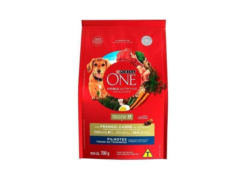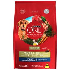 O menor preço encontrado no Brasil para Ração Seca Nestlé Purina One Frango E Carne Para Cães Filhotes - 700 G atualmente é R$ 33,99.