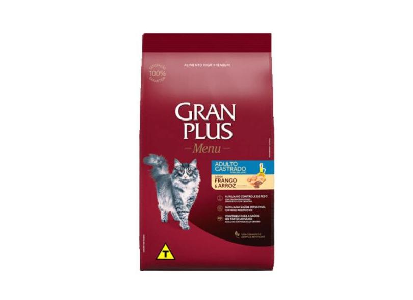 Ração Granplus Menu Para Gatos Adultos Castrados Sabor Frango E Arroz