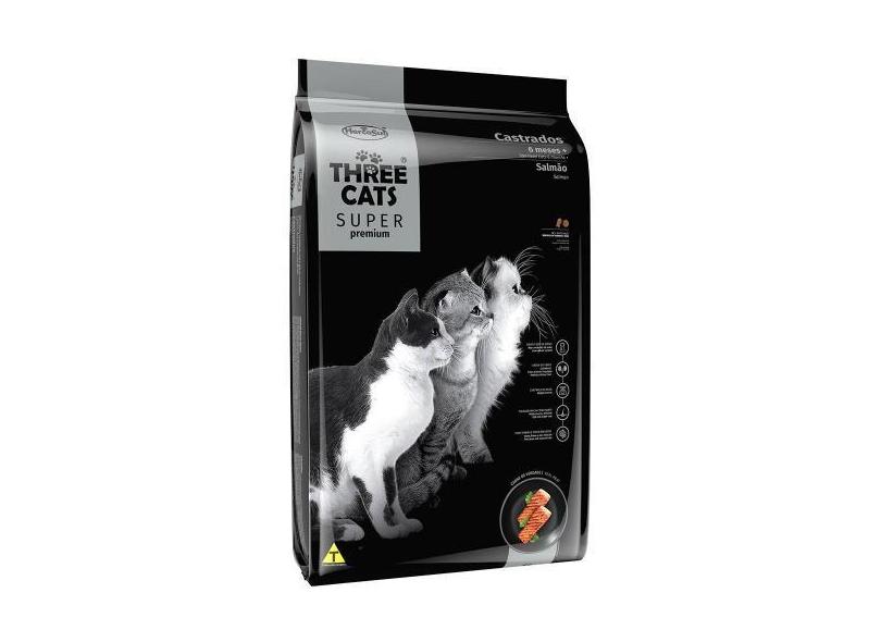 Ração Seca Three Cats Super Premium Salmão Para Gatos Castrados 6 Mese