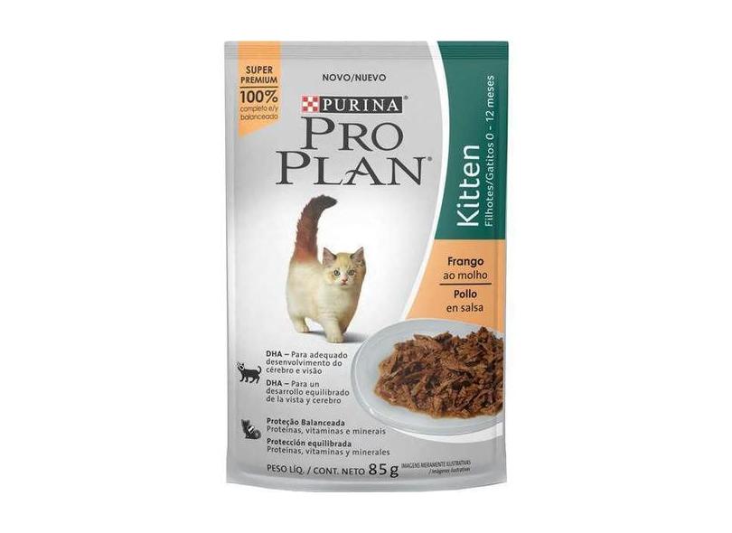 O menor preço encontrado no Brasil para Ração Úmida Pro Plan Gatos Filhotes Kitten Frango Sachê 85Gr - Nestlé atualmente é R$ 27,10.