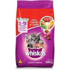 O menor preço encontrado no Brasil para Ração Whiskas Carne e Leite para Gatos Filhotes - 500 g atualmente é R$ 47,49.