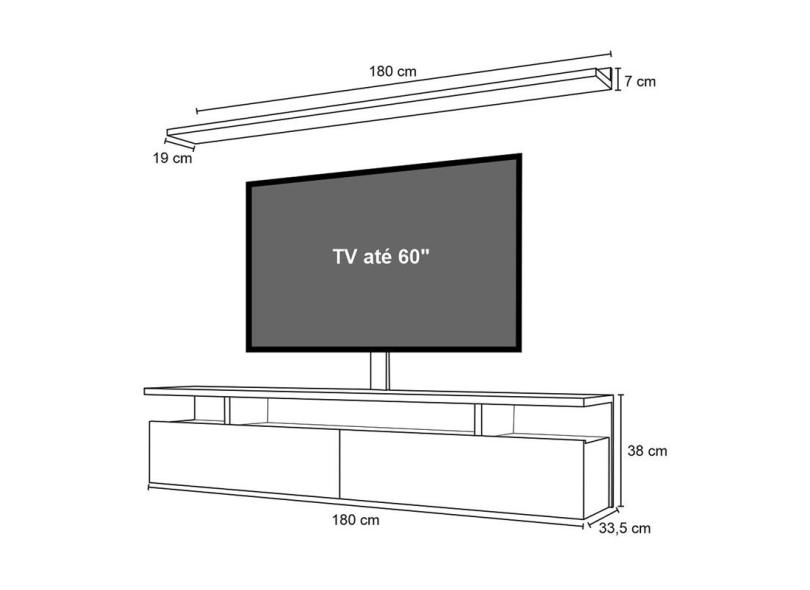 Bancada Suspensa 180cm com Prateleira e Suporte para Tv Até 60 Pol. Light H01 - Mpozenato