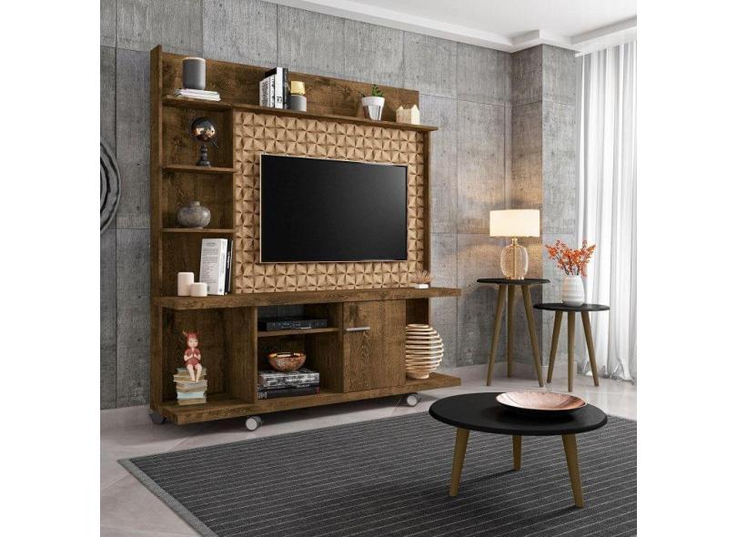 Conjunto Home Taurus Para Tv Até 47 Polegadas E Mesas Decorativas Pés De Madeira Bechara Móveis Bechara Madeira Rústica/3D