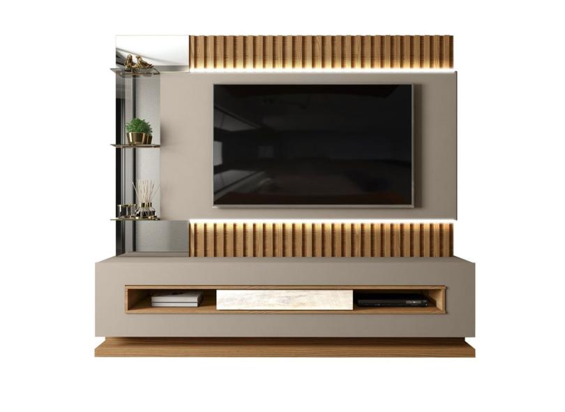 Estante Home Theater p/ TV 60" 100% MDF c/ LED Lumus DJ Móveis Amarula/Carvalho Europeu