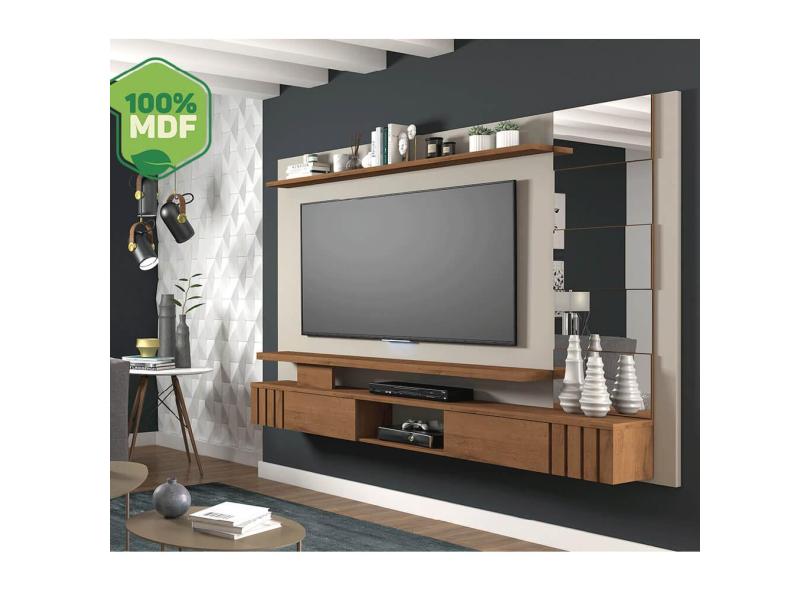 Painel De Parede Para Tv Permobili Murano Com Espelho - Off White / Savana