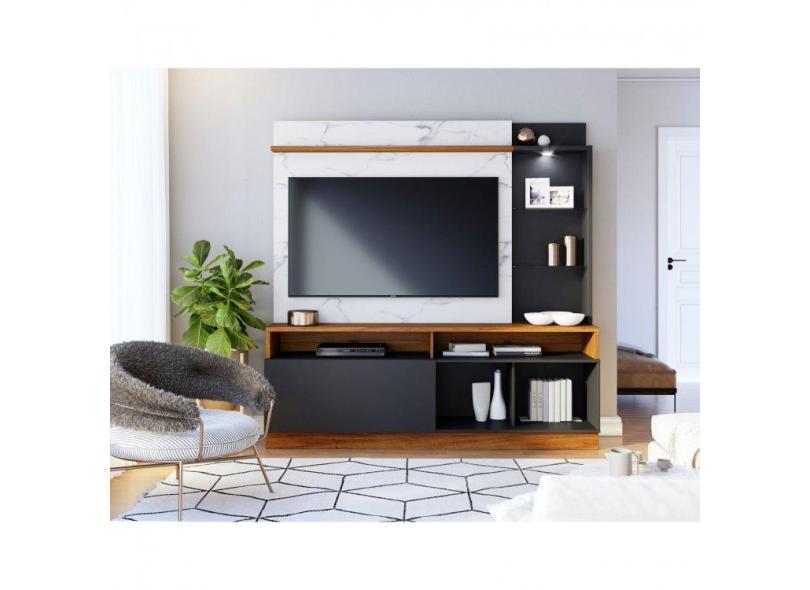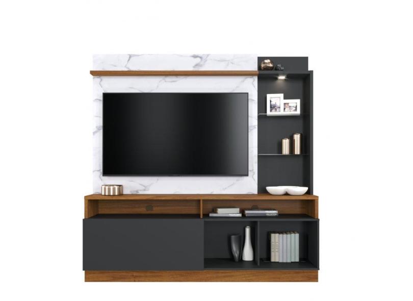 Painel Para Tv Até 60 Polegadas 4 Nichos 3 Prateleiras 1 Porta Com Led Leblon Colibri Noce Milano/Calacatta/ Fosco