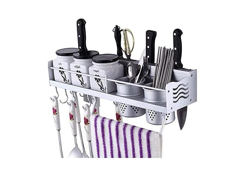 Rack de prato Rack de armazenamento de cozinha montado em parede com suporte para garrafas, Rack de prato de 1 camada de aço inoxidável 2 Cúpulas, 40 * 10 * 14 cm Rack de drenagem