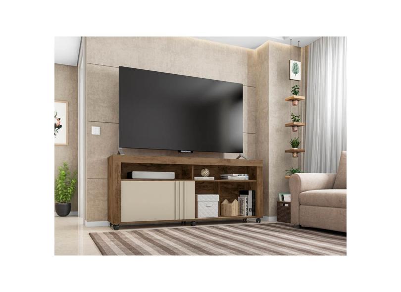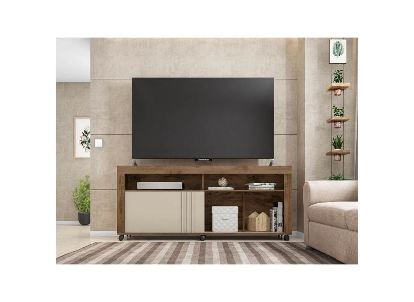 Rack Joy Para Sala De Estar Tv 60 Polegadas Cor Jatobá/ Off White - Caemmun