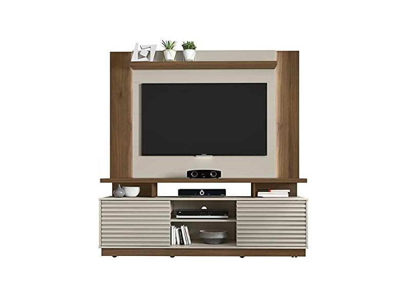 Rack New Blumenau E Painel Aurora Para TV De Até 70" Porta de Correr Luminária LED Off White Nogueira Línea Brasil