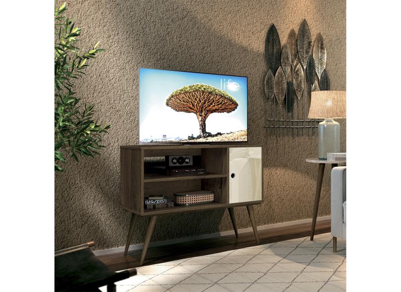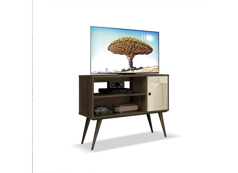 Rack Para Tv 32 Polegadas Retrô Pés Palito Reale Nogal Acetinado/Off White