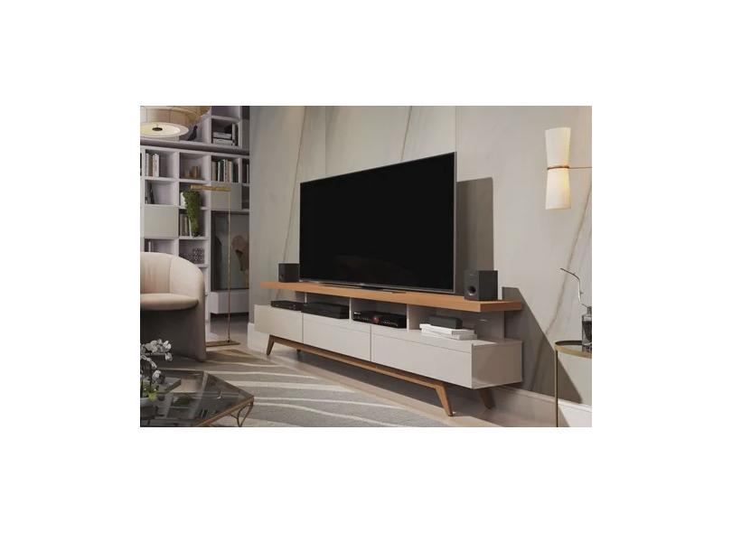 Rack para tv pekara 1,80 wood off white com naturale - village móveis