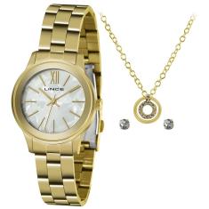 Kit Relógio Lince Feminino Lrgh155L Kz60 + Colar E Brincos