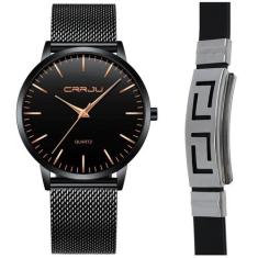 Kit Relógio Masculino Metal E Aço Inox Ultra Fino + Pulseira