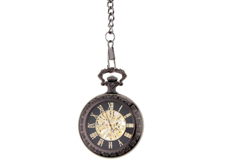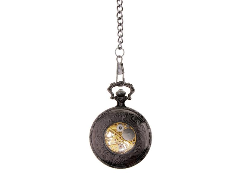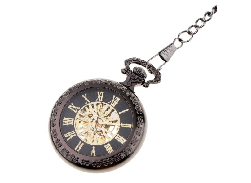 Relógio de Bolso Masculino Steampunk Fob Mecânico Wind Up Skeleton Corrente Vintage