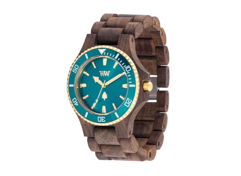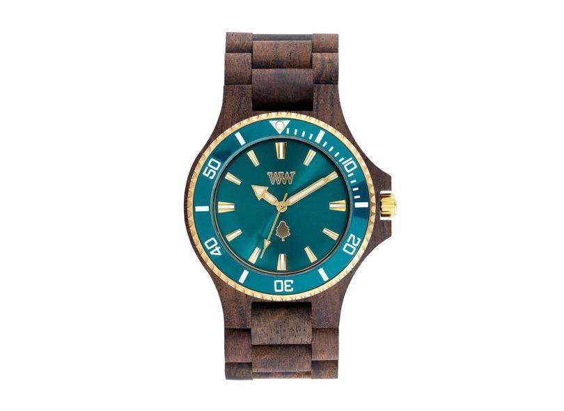 Relógio De Madeira Wewood Date Mb Choco Rough Emerald