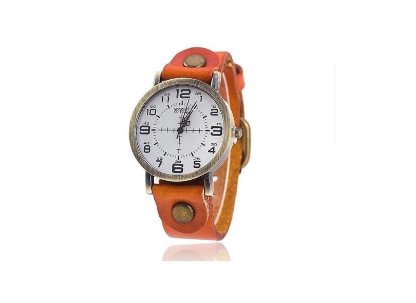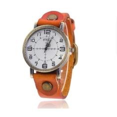 Relógio de Pulso Quartz Feminino De Couro Laranja