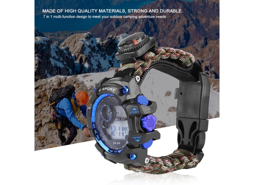 Relógio de sobrevivência multifunções à prova d'água pulseira Bússola Paracord WhistleBB