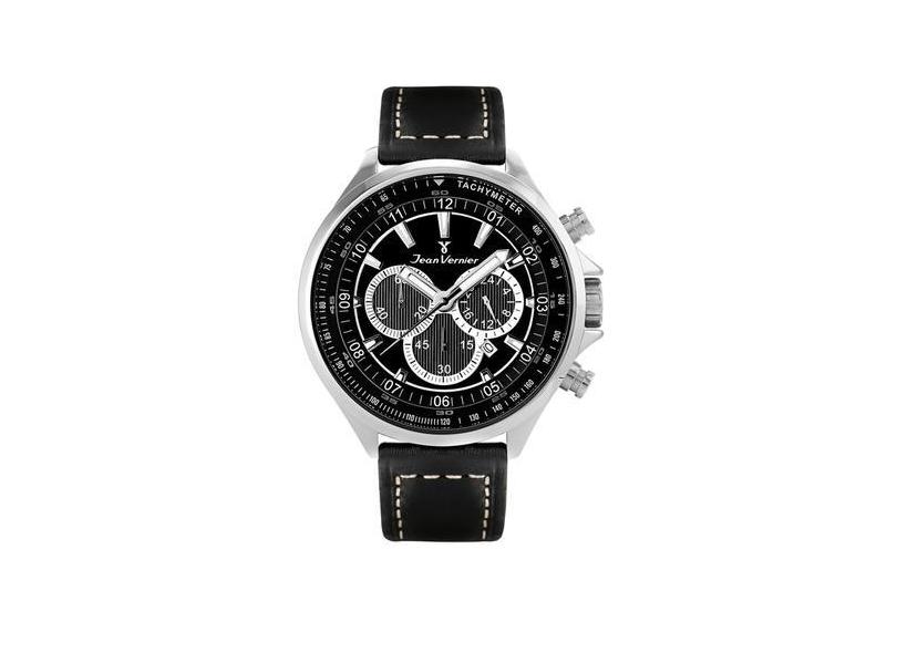 Relógio Jean Vernier Caixa Aço Pulseira Couro Casual