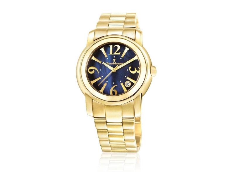 Relógio Jean Vernier Caixa E Pulseira Aço Vidro Cristal