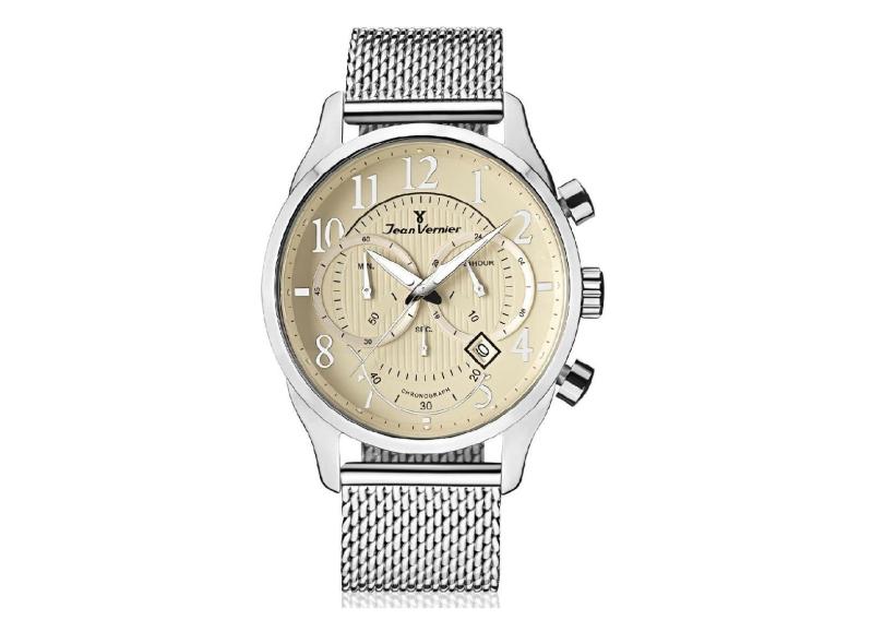 Relógio Pulso Jean Vernier Masculino Pulseira Aço Moderno