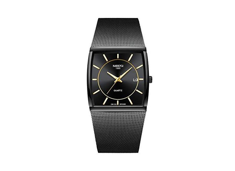 Relógios masculinos de negócios moda top marca vestido de luxo casual pulseira de malha impermeável com relógio de pulso quadrado data,