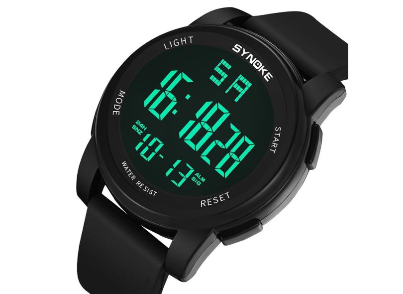 Synoke 9002 Digital Movimento Men Watch 3ATM impermeável Casual Outdoor Sports relógio de pulso de contagem regressiva Chronograph Alarm Clock 12/24 Horas Semana Data LED Backlight Relógio de pulso para masculino com pu Strap faixa