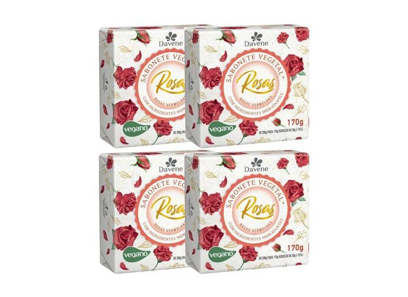 4Un Sabonete Vegetal Rosas Vermelhas 170G Davene