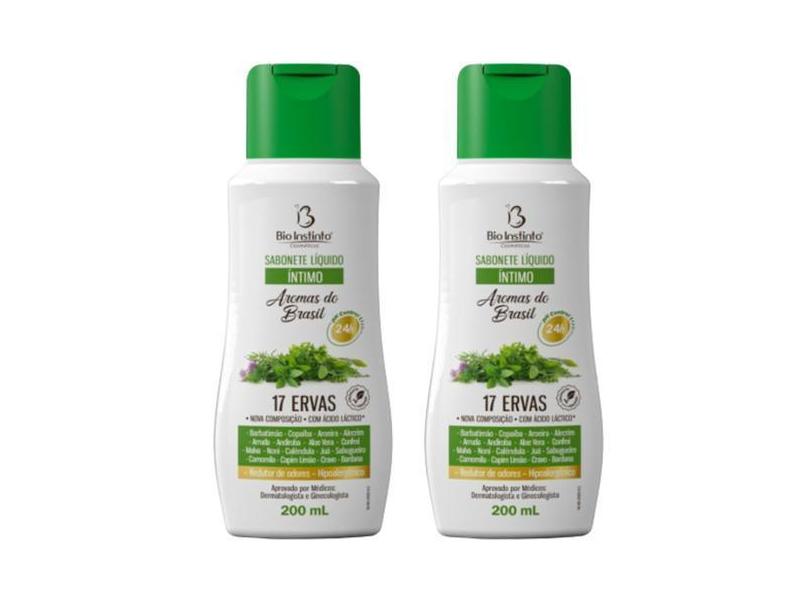 O menor preço encontrado no Brasil para Kit 2 Sabonete Líquido Íntimo 17 Ervas 200Ml - Bio Instinto atualmente é R$ 18,10.