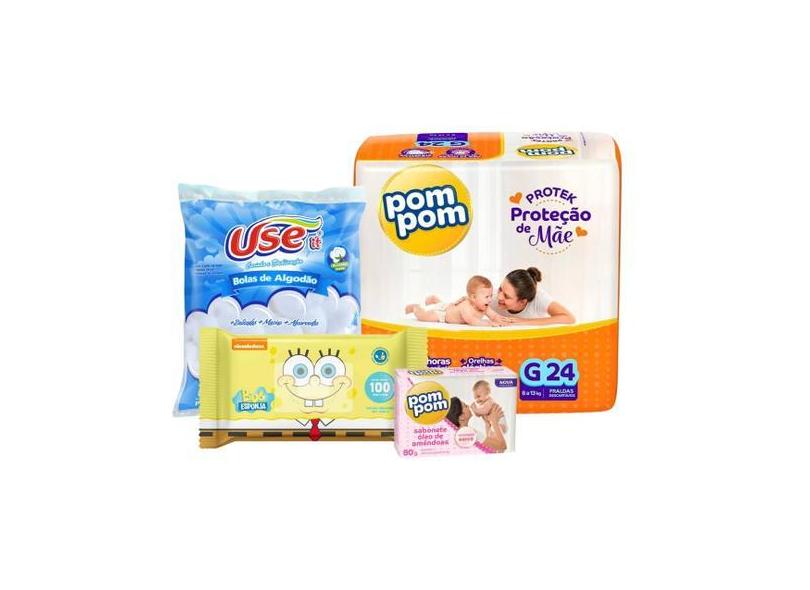 Kit Chá De Bebê Pom Pom Toalhinha Bob Algodão Use E Sabonete - Pompom,