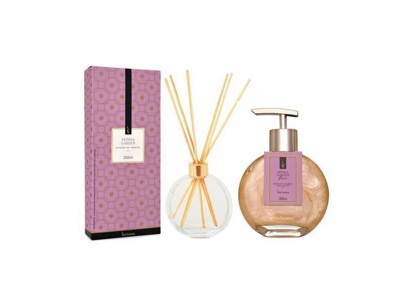 Kit Peonia Garden Via Aroma (1 difusor de varetas e 1 sabonete liquido