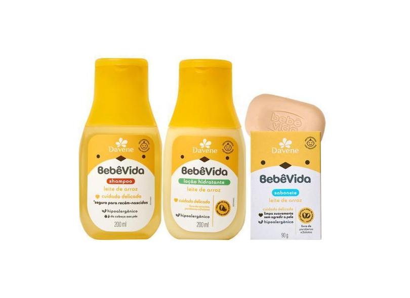 Shampoo+Sabonete Vegetal+Hidratante Leite De Arroz Bebe Vida - Davene