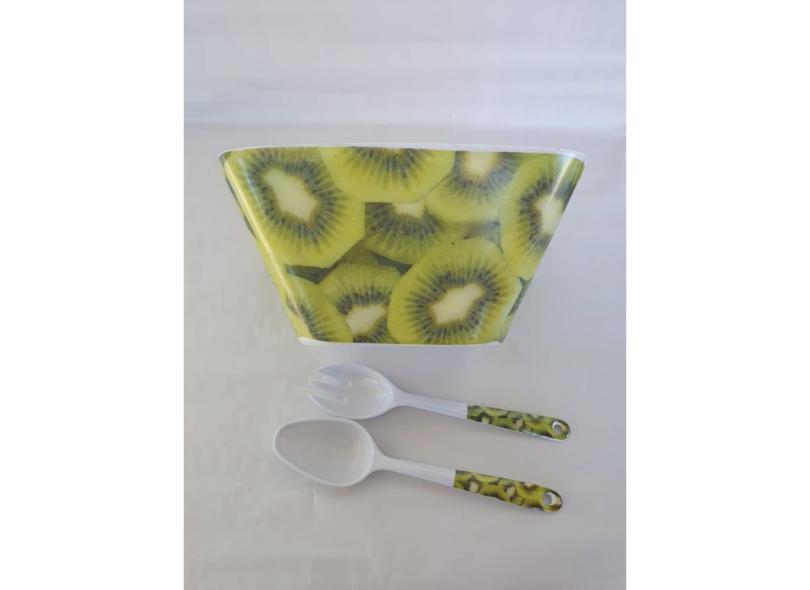 Saladeira Melamina Kiwi com colher e garfo para servir