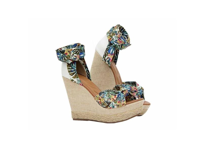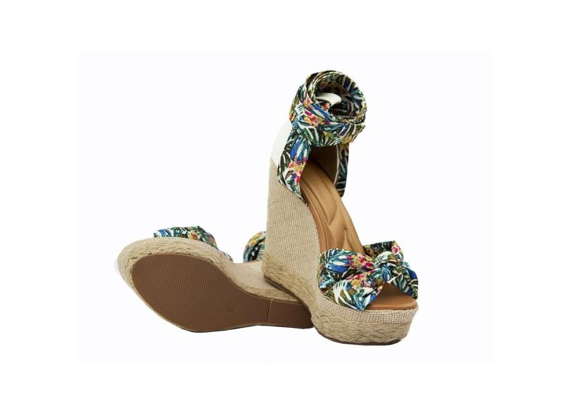 Sandália Feminina Anabela Florida Plataforma Amarração Corda