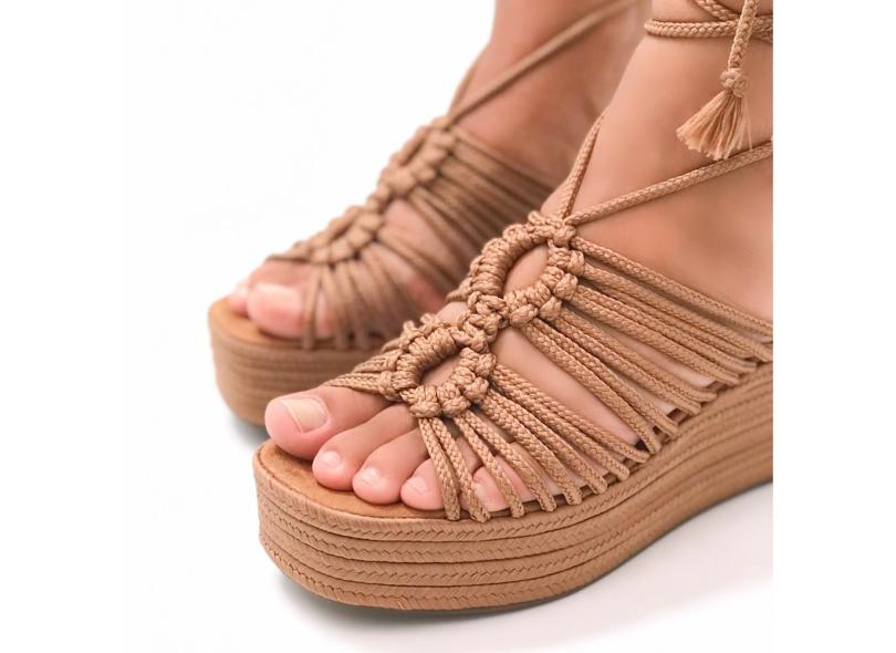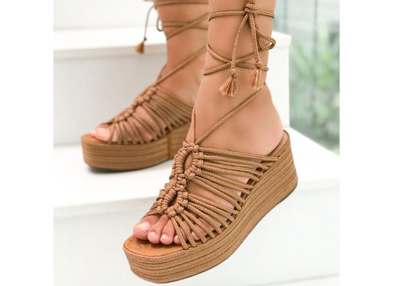 Sandalia Feminina New Crush Corda Fina Amarração Suede Camel