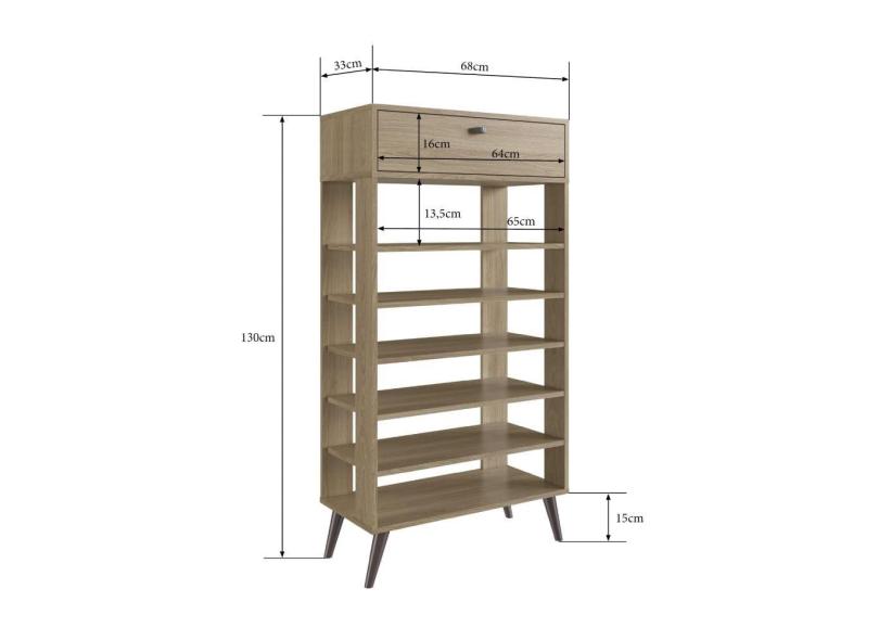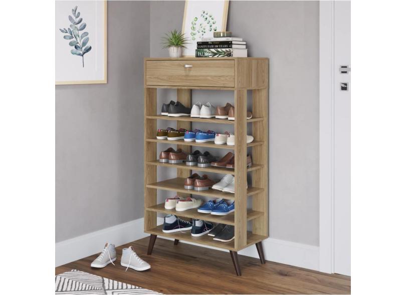 Sapateira 1 Gaveta 5 Prateleiras Carvalho Completa Móveis