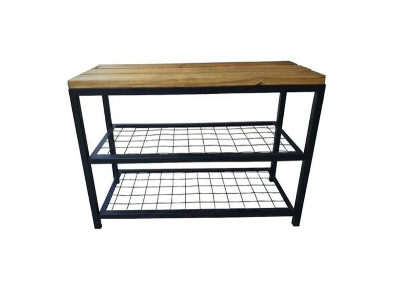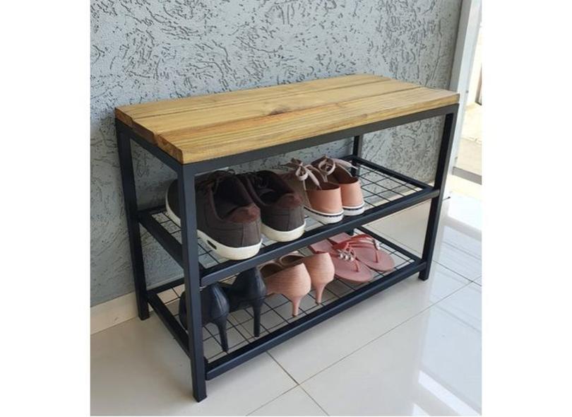 Sapateira De Porta Para Lobby Decoração Industrial Madeira Vazada