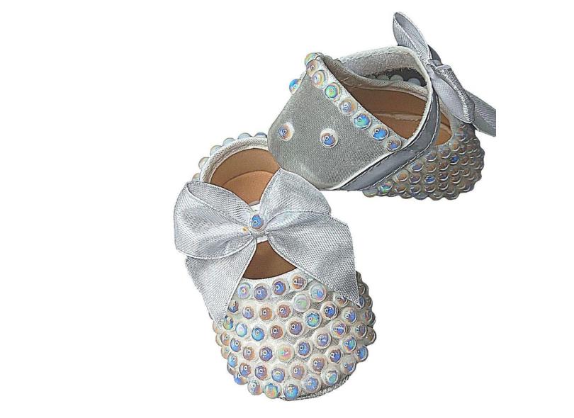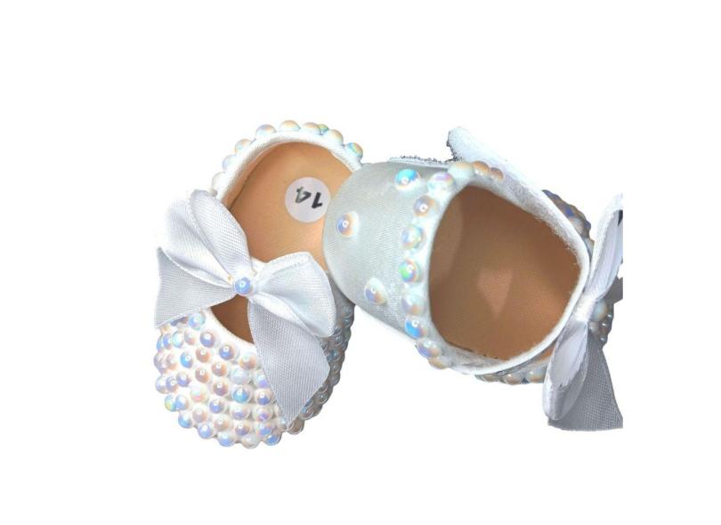 Sapatinho De Bebê Pérola Menina Com Tiara /Perola P
