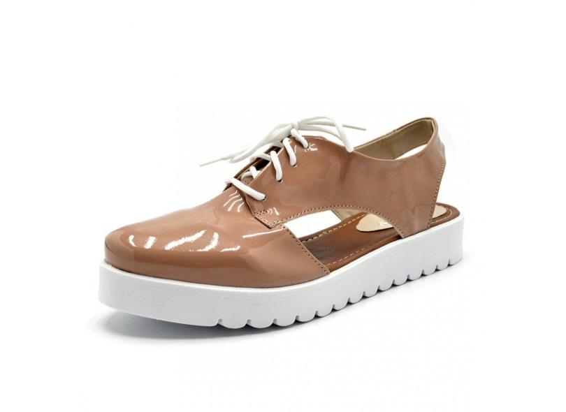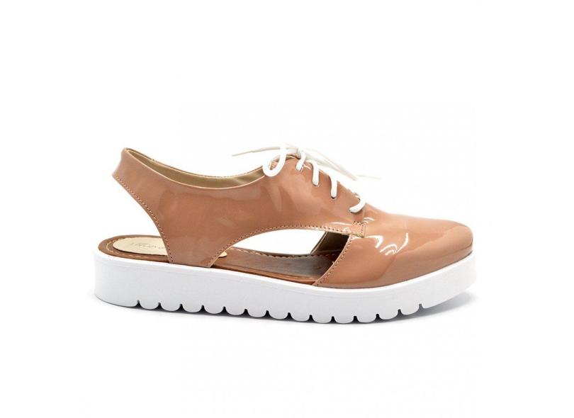 Sapato Feminino Oxford Aberto Em Napa Verniz Nude Flor Da Pele