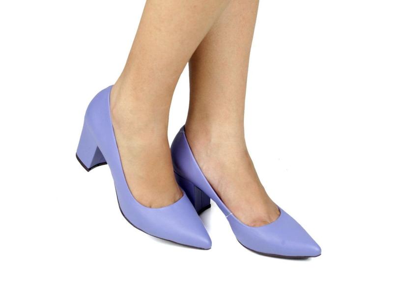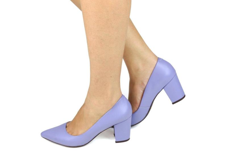 Scarpin Couro Salto Bloco Lilás