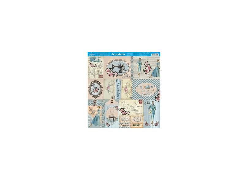 Página para Scrapbook Dupla Face Litoarte 30,5 x 30,5 cm - Modelo SD-1065 Tags Costura