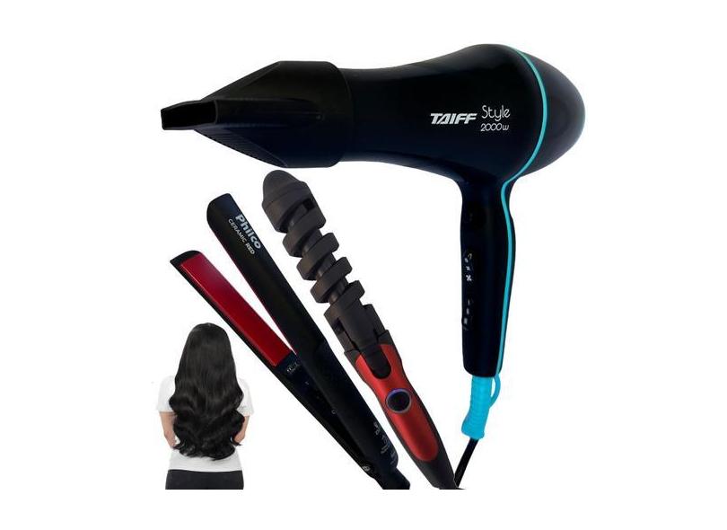 Kit Secador De Cabelos Salão E Chapinha Íon E Modelador 25mm - Taiff